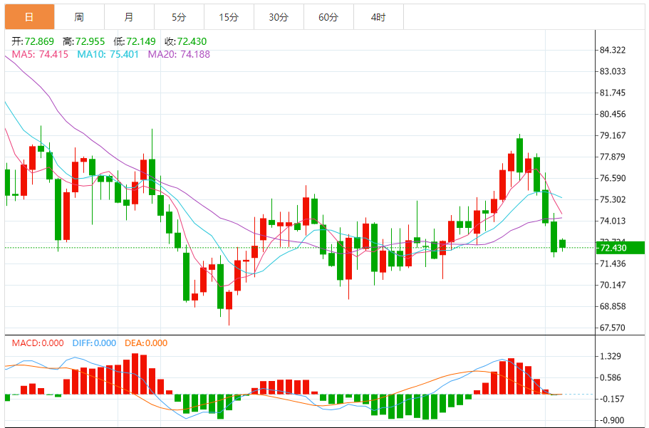基本消息面 周一(2月5日),美国原油期货WTI主力维持窄幅探底回升,现徘徊于72.50美元/桶一下。亚市窄幅波动甚至反弹修正虽然都是平常规律,但值得注意的是,油价目前正来到关键支撑位置。 日图显示,美WTI原油主力目前徘徊在72-73美元/桶区间,该水平正好处在去年12月中旬启动的上涨趋势