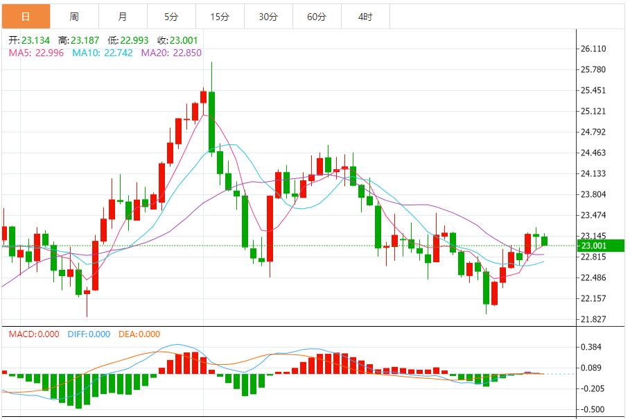 周三(1月31日),现货白银目前位于23.00美元/盎司,跌幅为0.61%。白银价格昨日面临测试关键支撑位23.00的负面压力,并在此上方保持稳定,以保持未来一段时间的看涨趋势,目标主要是23.70。 随机指标逐渐摆脱其负面影响,以支持建议的看涨波的延续,该波得到A50的持续支持,注意到突破23.00然后突破22