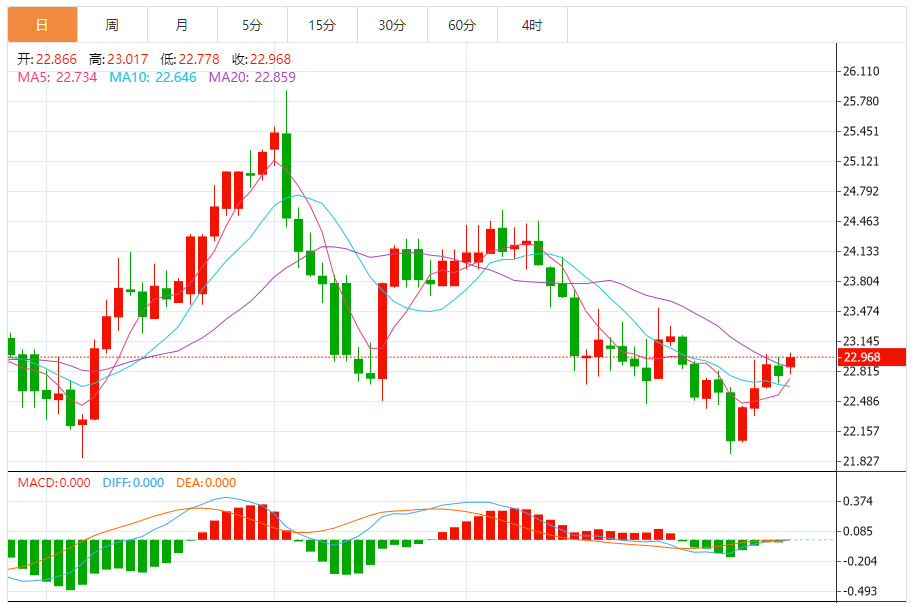 基本消息面 周一(1月29日),现货白银维持日内升势,银价目前正接近23.00美元/盎司关口,日内攀升0.8%。白银技术面传递看涨信号,这为银价突破关键阻力23.00美元/盎并进一步大涨打开空间。 相关新闻消息 银价目前呈现升势,并准备测试关键阻力23.00美元/盎司。主要技术指标