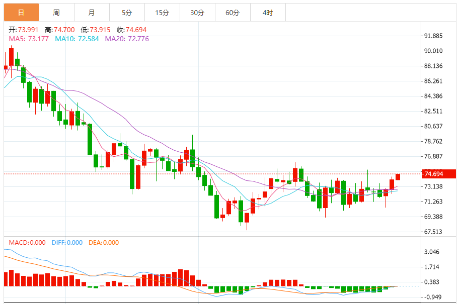 基本消息面 周五(1月19日),原油价格震荡走高,美原油连续报74.65美元每桶,涨0.88%。布伦特原油连续报79.64美元每桶,涨0.68%。截至发稿,WTI原油周涨2.41%,布伦特原油周涨0.33%。 原油价格本周将以上涨收盘,因中东局势升级风险上升,石油输出国组织预计今年石油需求强劲,美国库存下