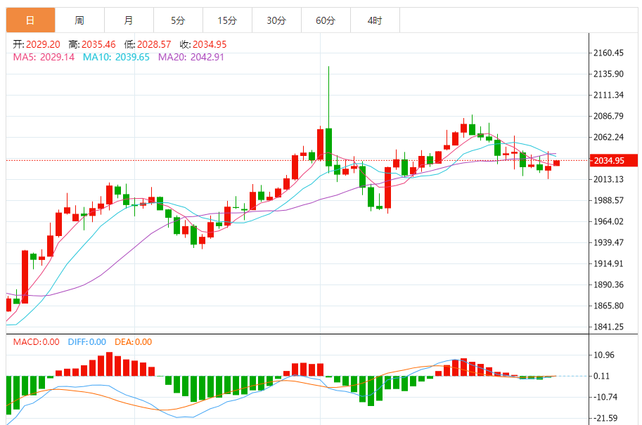 基本消息面 北京时间12日凌晨,纽约黄金期货价格周四回吐涨幅,此前美国12月消费者价格指数高于预期,引发了市场对美联储将在更长时间维持更高利率的担忧。 美元与美国国债收益率攀升也使金价承压。 现货黄金下跌0.4%,至每盎司2014.89美元,低于数据公布前的0.8%。纽约商品