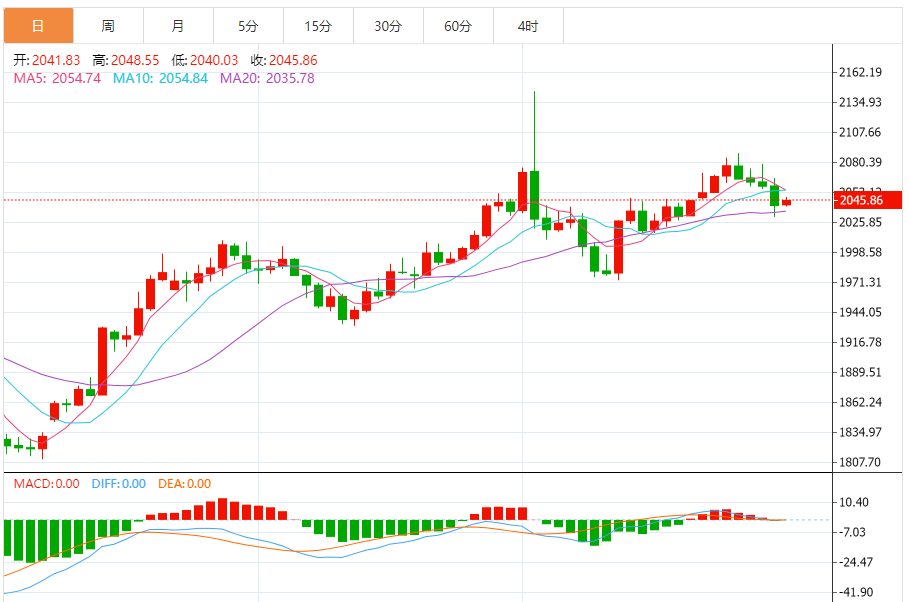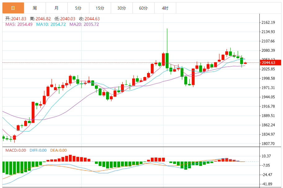 基本消息面 周四(1月4日),现货黄金在昨日大跌后小幅反弹,金价目前位于2047美元/盎司附近。金价在昨日大跌后已经达成首个看空目标2065.70美元/盎司,只要无法有效攻克这一水平,那么金价前景仍然看空。 相关新闻消息 受美元走强影响,现货黄金周三收市重挫0.85%,报2041.3