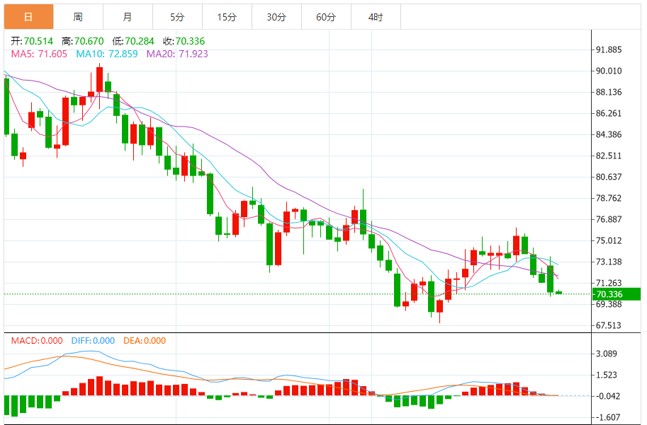 基本消息面 周二(1月2日),由于投资者降低了降息预期,美元走强,令石油承压。同时,由于对红海紧张局势可能扰乱供应的担忧有所缓解,油价在2024年第一交易日下跌,国际原油期货结算价跌超1%。 WTI2月原油期货收跌1.27美元/桶,跌幅1.78%,收报70.38美元/桶,为连续第四个交易日收跌。