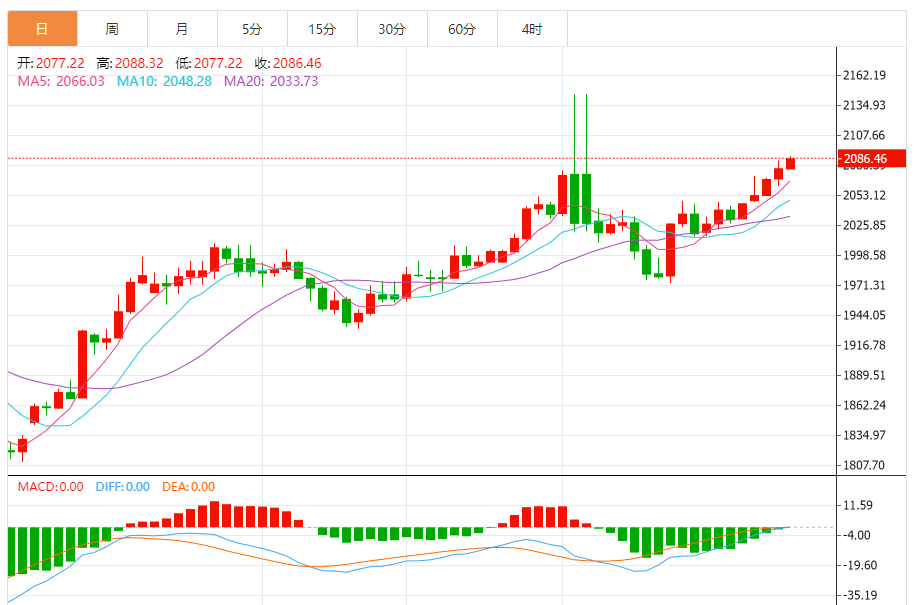 基本消息面 周四(12月28日),现货黄金维持日内升势,金价现报2086美元/盎司附近。金价重回看涨通道,这是技术面重大利好,为金价进一步大涨铺平道路。 相关新闻消息 现货黄金周三收市上升9.73美元,涨幅0.47%,报2077.50美元/盎司。 金价开始今日交易后呈现更