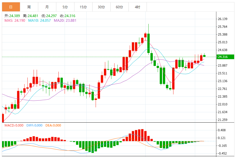 基本消息面 周五(12月22日),现货白银基本持稳,银价目前位于24.31美元/盎司附近。银价在昨日强势走高后接近目标价位24.60美元/盎司,突破这一水平可能引发银价又一波大涨行情。 相关新闻消息 受美元重挫提振,现货白银周四收市上升1.05%,报24.39美元/盎司。