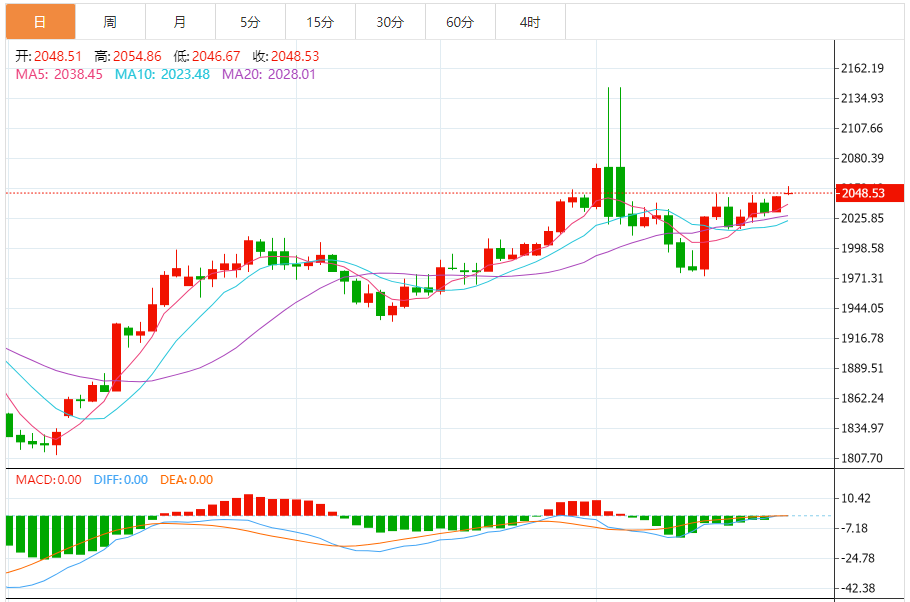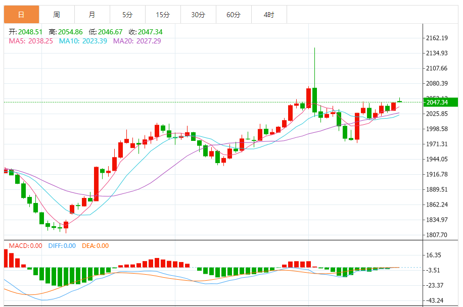 基本消息面 周五(12月22日),现货黄金保持坚挺走势,金价现报2048美元/盎司附近。金价完成看涨技术形态的构建,从而确认重要看涨信号,这为黄金进一步上升铺平道路。 相关新闻消息 现货黄金周四强势上升14.53美元,涨幅0.72%,收报2045.83美元/盎司。周五亚市早盘,金价一