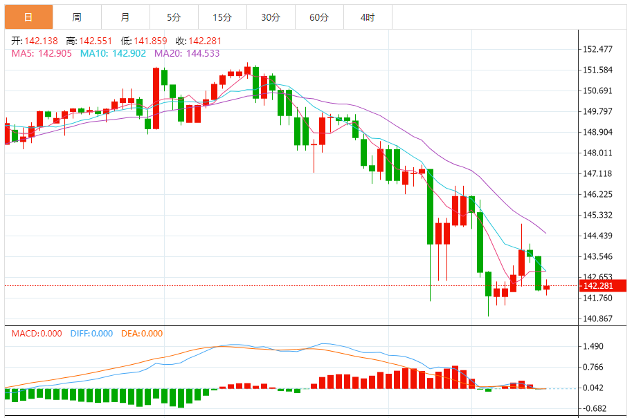 周五(12月22日),美元/日元上涨,暂报142.293,涨幅0.12%。 市场基本面分析 日本通胀降温现象在11月份更加明显,负利率政策距离结束或许还有更远的路要走。 根据日本内务省周五公布的报告,日本11月CI同比上涨2.8%,持平预期,较前值3.3%明显下降。 剔除波动
