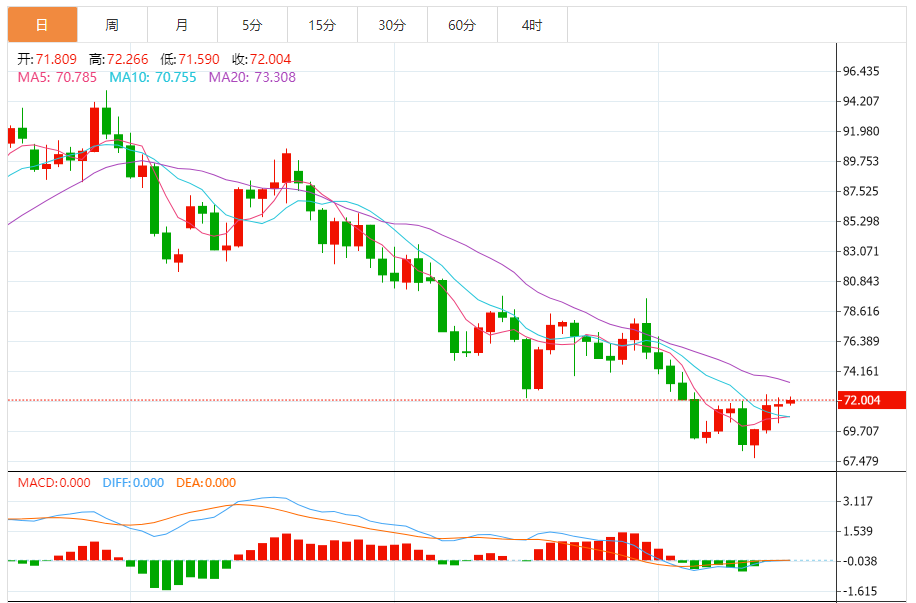 基本消息面 周一(12月18日),原油价格交投于72.19美元/桶附近,油价从趋势来看周线收涨,并留下了一根长长的有很强触底意味的下影线,又一次在年内低点附近悬崖勒马。 相关新闻消息 上周三油价的大跌一度再次引发市场对油价将破位下跌的担忧,但随后油价连续反弹,时隔七周