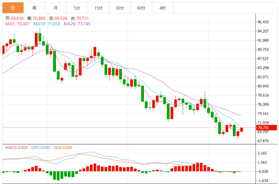 基本消息面 今年9月底,油价一度接近每桶98美元的年内高位,随后便跌跌不休,本月可能会录得连续第三个月下跌。目前,布伦特原油期货价格徘徊在75美元/桶左右,而WTI原油期货价格徘徊在70美元/桶左右。 相关新闻消息 过去数月,随着美国等非OC产油国增加产量,以及全