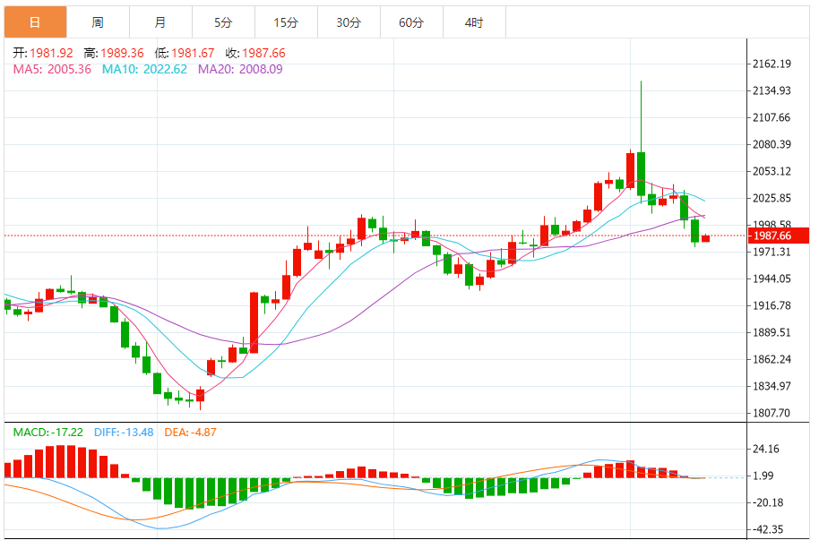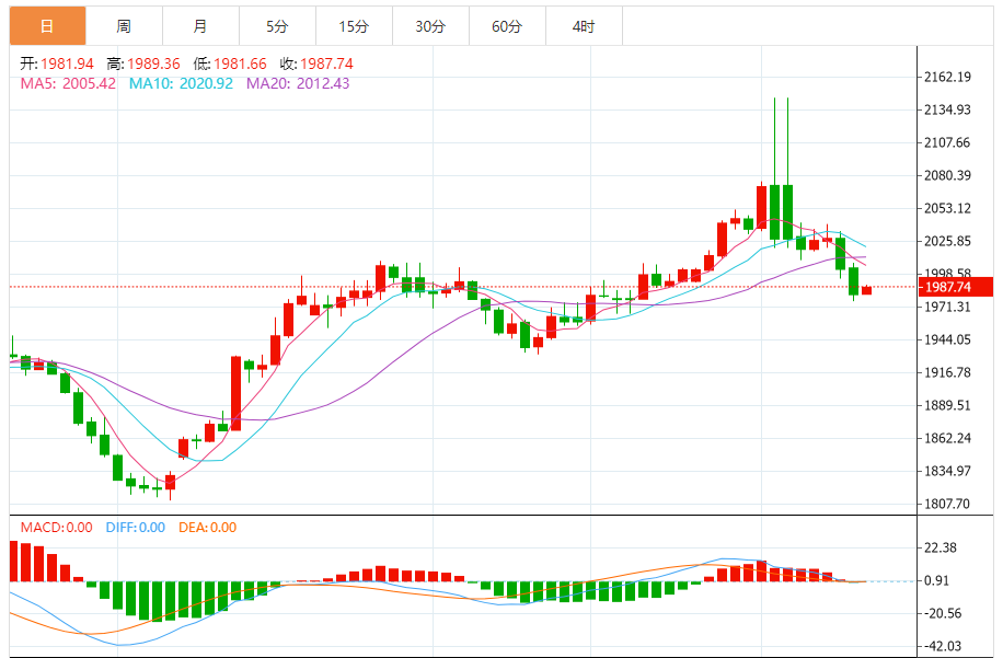 基本消息面 周二(12月12日)欧市盘中,现货黄金维持日内温和反弹走势,金价现报1986美元/盎司附近。本交易日,黄金交易员将聚焦美国CI报告,预计将引发金价大行情。 金价在周一触及三周低点1976美元/盎司后,正在“舔舐伤口”。 从黄金日线图的技术指标来看,金价位于两条