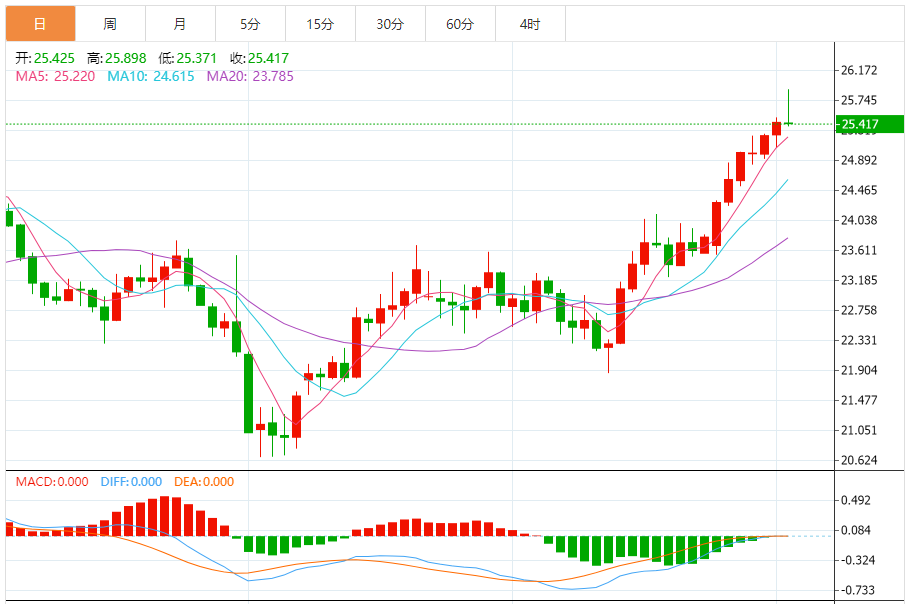 周一(12月4日),现货白银目前位于25.422美元/盎司,跌幅为0.05%。白银价格在25.50超过了我们等待的目标,并在26.07接近扩展目标,注意到价格回到第一水平附近波动,等待获得积极的动力,帮助推动价格恢复牛市,并在即将到来的交易中实现更多收益。 随机利空解释了当前横盘波动的原因,而A50为建议的