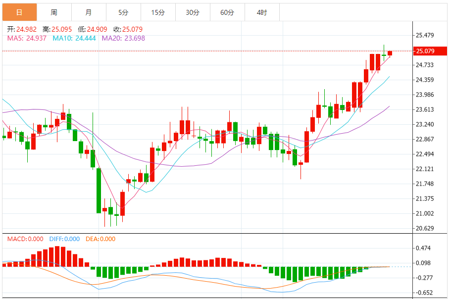 周四(11月30日),现货白银目前位于25.078美元/盎司,涨幅为0.32%。白银价格恢复积极交易,超过25.00美元的障碍,加强了继续看涨趋势的预期,提醒您我们的下一个目标位于25.50美元。 随机指标试图摆脱其负面势头,以支持所建议的正面情景,这得到了A50的持续支持,注意到突破24.60将阻止预期的上涨,