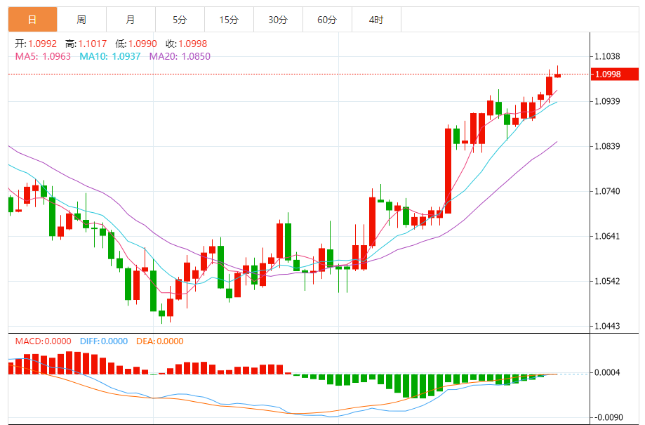 周三,欧元/美元徘徊于1.0999关口下方,现交投于1.0999附近,涨幅0.06%。 市场基本面分析 欧元区经济近几个季度停滞不前,预计今年剩余时间将继续疲软。欧盟统计局最新公布的数据显示,经季节调整后,今年第三季度欧元区GD环比萎缩0.1%,欧盟GD环比增长0.1%。不少经济学家表示,欧元区经