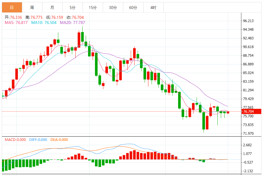基本消息面 周五(11月24日),美原油价格交投于76.710美元/桶附近,涨幅为0.41%。周四油价全天维持震荡格局小幅下跌。 相关新闻消息 由于欧佩克方面宣布推迟了会议时间,围绕欧佩克+最终的减产决议将推迟到下周才会有最终结果,在上一交易日消息曝出后油价剧烈震荡之后市场