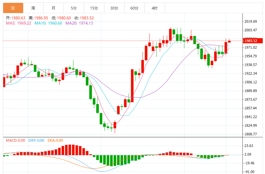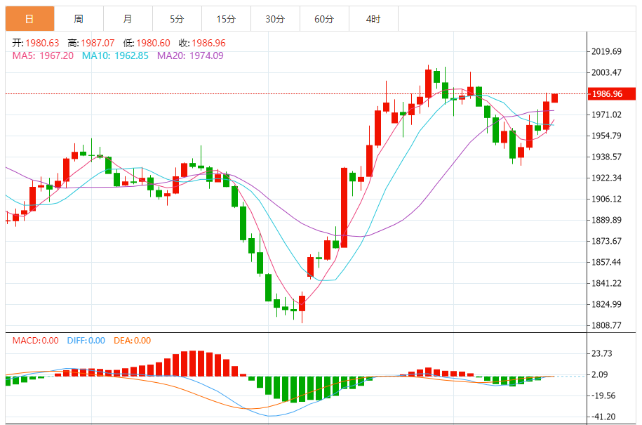 基本消息面 周五(11月17日)欧市早盘,现货黄金短线一波拉升,金价刚刚突破1986美元/盎司。金价已经确认攻克重要水平1975.00美元/盎司,这为金价进一步大涨打开空间。 相关新闻消息 现货黄金周四收市大涨21.86美元,涨幅1.12%,收报1981.11美元/盎司。 金价昨