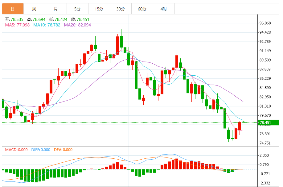 基本消息面 周二(11月14日),原油价格交投于78.45美元/桶附近,上周五油价反弹了2%,市场情绪有所回暖,但过去一周让投资者印象更深刻的是前半周油价的破位急跌行情。 相关新闻消息 WTI原油一度跌超7%,过去一段时间投资者已经注意到需求端很难承受冲高到90美元以上的油价