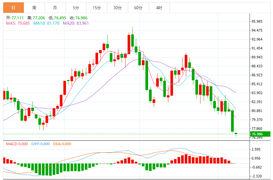 基本消息面 周三(11月8日),美原油交投于77.305美元/桶附近,涨幅0.24%。据了解,昨日国际油价下跌的背后,主要原因是当天美联储官员鹰派的表态引发市场对于原油需求的担忧,以及供应端紧张情绪的缓解。 相关新闻消息 “现在宣布战胜通胀还为时过早,担心通胀可能会再次抬