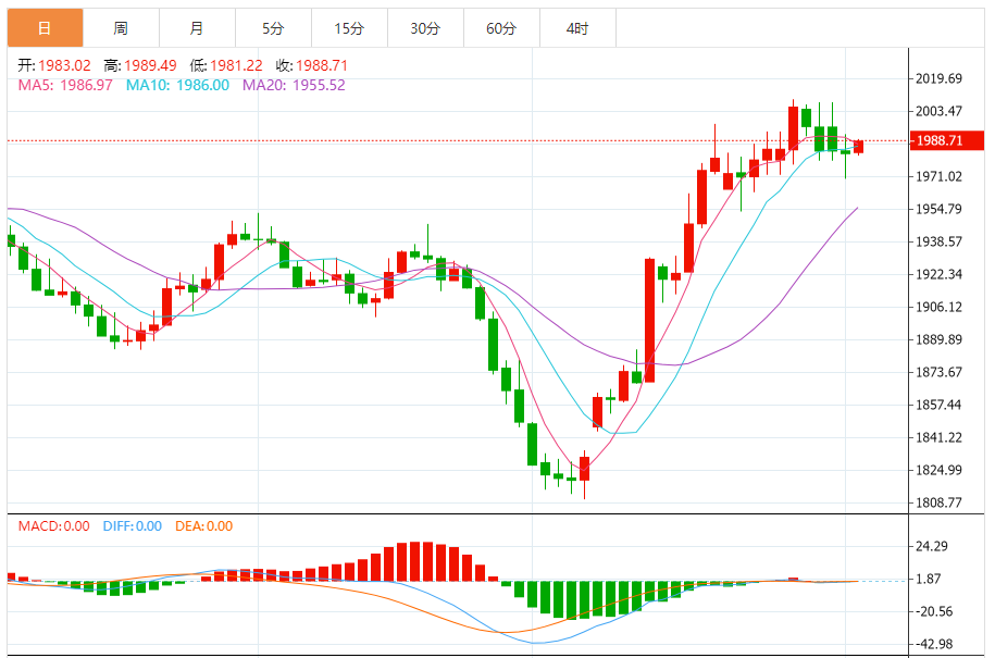 基本消息面 周四(11月2日)欧市盘中,现货黄金短线突然加速上升,金价正逼近1990美元/盎司关口。假如金价突破1993.00美元/盎司,金价前景将转为看涨。美元指数维持日内跌势,现报106.25附近。美元走软利好金价走势。 相关新闻消息 金价之前几个交易日在横盘区间波动,位于50