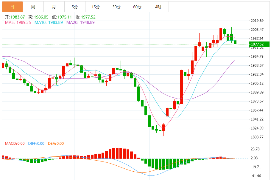 基本消息面 周三(11月1日)欧市早盘,现货黄金维持日内回调走势,金价现报1978美元/盎司附近。金价已经跌破重要支撑,这为黄金进一步下跌打开空间。 相关新闻消息 金价昨日收市强势下滑,如图所示,金价确认跌破看涨通道支撑线,从而开始针对始于1810.35美元/盎司区域升势的