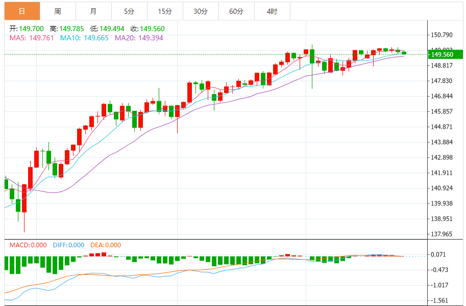 周二(10月24日),美元/日元下跌,暂报149.560,跌幅0.10%。 市场基本面分析 当地时间周二,日本央行宣布了另一项计划外的债券购买操作,以遏制不断上升的国债收益率。在日本央行下周做出政策决定之前,交易员对其决心提出了质疑。 据了解,这是日本央行自7月底调整收益率曲