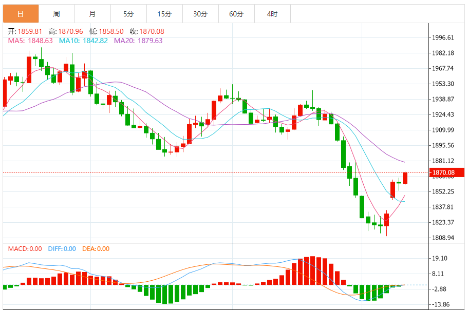 基本消息面 周三(10月11日),现货黄金短线突然快速上升,金价正接近1865美元/盎司。技术面支持金价延续升势,首个看涨目标位于1873.50美元/盎司。美元指数短线回落,目前跌至105.70附近。美元走软利好金价走势。 相关新闻消息 金价继续在窄幅区间内波动,昨日收在1860.00美