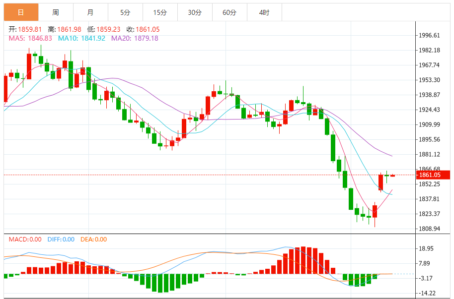基本消息面 由于以色列的地区冲突在中东造成进一步的混乱,黄金价格本周在避险需求的推动下大幅走高。截至发稿,现货黄金现报1861.15美元/盎司,涨幅为0.04%。 根据商品期货交易的最新数据,除了黄金新的地缘政治动力外,分析师指出,由于债券收益率上升,对冲基金逃离黄金市场后,仓位已