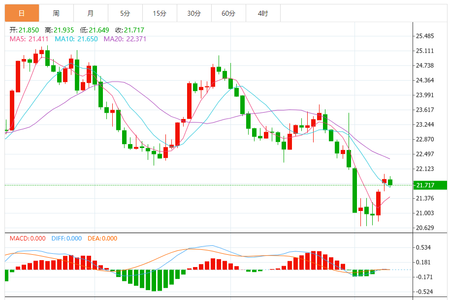 基本消息面 周二(10月10日),现货白银短线加速下滑,银价已经跌破21.70美元/盎司,日内重挫近1%。除非银价跌破关键水平21.35美元/盎司,否则白银前景目前仍然看涨。 相关新闻消息 银价目前呈现走软态势,随机指标传递负面信号,这阻碍银价的升势。目前等待随机指标获得正面