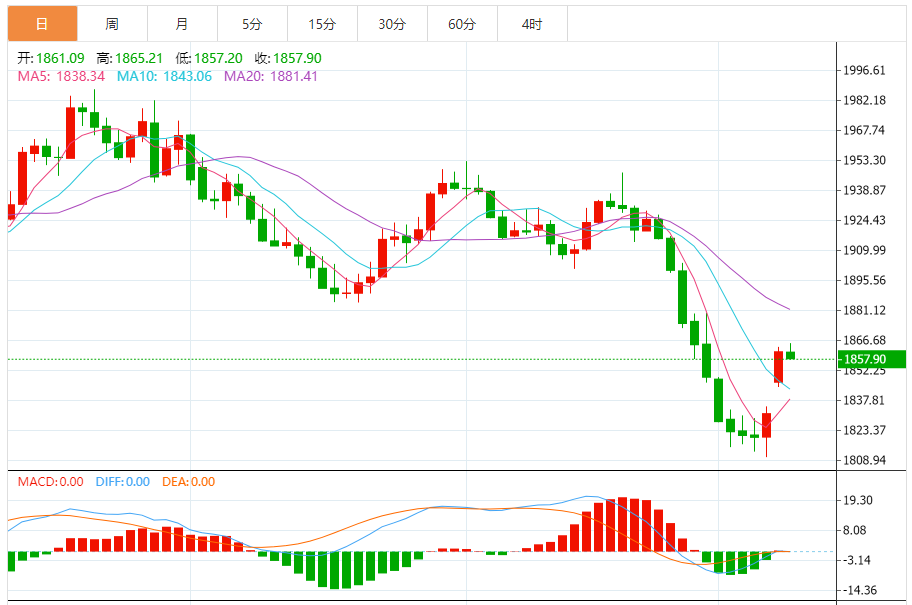 基本消息面 周二(10月10日),现货黄金短线再度快速下滑,金价正逼近1855美元/盎司,亚市盘中金价曾突破1865美元/盎司。美元指数扩大日内反弹走势至106.20上方,这令金价承压。假如金价保持在1847.50美元/盎司上方,那么金价前景仍然看涨。 相关新闻消息 金价此前一度接近我