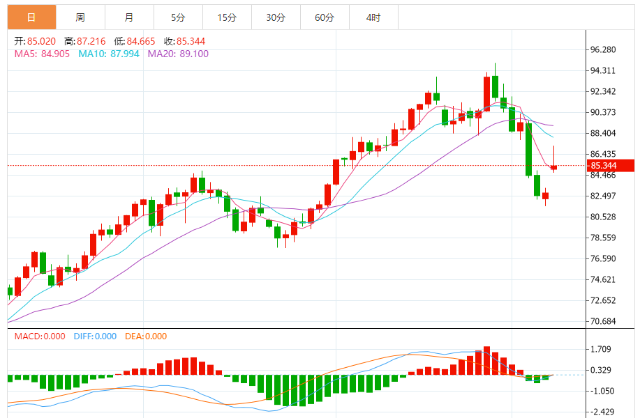 周一(10月9日),WTI原油期货维持日内大涨走势,目前交投在85美元/桶附近,日内升幅接近4%;黄金期货也维持升势,期金目前位于1867美元/盎司附近,日内大涨逾20美元。原油价格今日大幅上升,出现一个缺口,但可能分别在89.50-90美元/桶(布伦特原油期货)和88美元/桶(WTI原油期货)处面临阻力。黄金、白银和铜期货