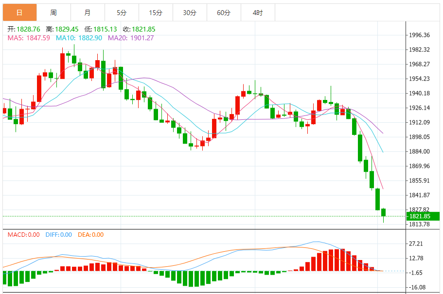 基本消息面 周一(10月2日),黄金价格大幅下跌,12月黄金期货触及10个月低点。强势美元今日触及10个月高位,且美国国债收益率升至16年高位,这些都是外部市场因素造成的利空,打压贵金属市常 美市尾盘,现货黄金收报1927.85美元/盎司,下跌20.84美元或1.13%,日内最高触及1948.98美元/盎