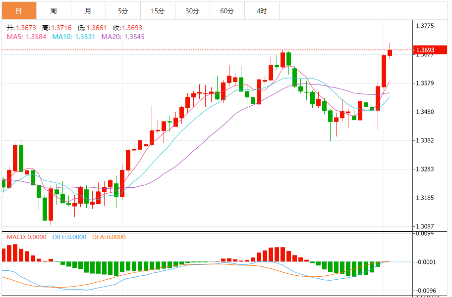 周二,美元/加元徘徊于1.3693关口下方,现交投于1.3693附近,涨幅0.12%。 市场基本面分析 对于加元的前景,各机构分析师观点不同。 汇丰银行经济学家预计加元兑美元短期内将进一步走强。汇丰银行分析师表示。加元可以利用高油价,“我们预计,在10月25日加拿大央行(oC)会