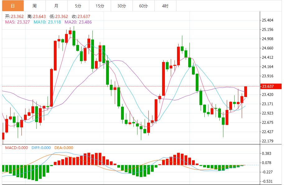 基本消息面 周五(9月22日),现货白银维持日内强势反弹走势,目前银价位于23.65美元/盎司附近,日内大涨1%。 相关新闻消息 银价在之前几个交易日测试23.00美元/盎司后明显反弹,恢复看涨走势,并接近我们预测的看涨目标23.70美元/盎司。我们需要监控银价在这一水平的价格走