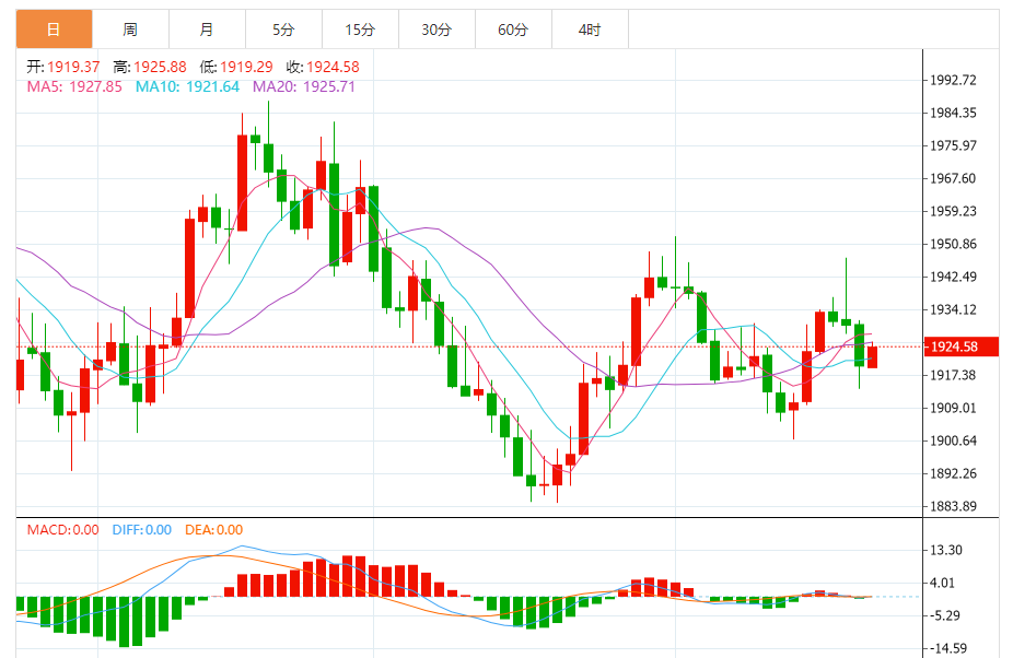 基本消息面 周五(9月22日),现货黄金短线加速反弹,金价刚刚突破1925美元/盎司,刷新日内高点。若金价攻克首个目标1929.00美元/盎司,这将为金价进一步大涨打开空间。 相关新闻消息 金价昨日强势下滑,并一度非常接近目标价位1913.15美元/盎司。值得注意的是,金价明显反弹