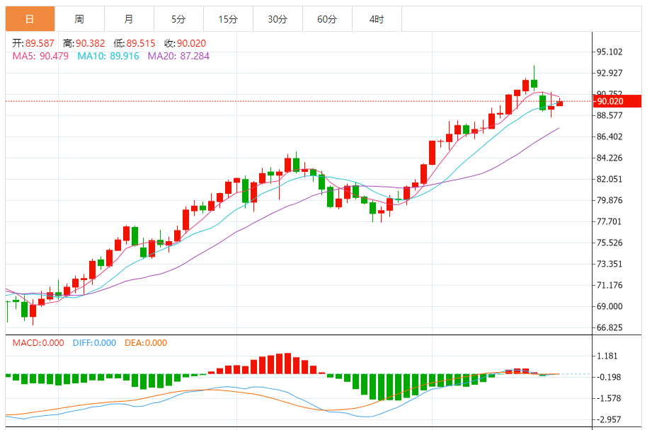 基本消息面 原油周四日内延续一波回修,跌至88.3附近止步,也是符合预期,走势也倒是迎合自身技术需要,在欧美盘时段行情回弹,重新反弹至10日线上方,最高点再补回至91附近,日线收一个长下影反阳形态,在88分水岭位置失守之前,后面几天仍存在刷新近期高点的概率,然后触及再反复打压调整震荡,我们可