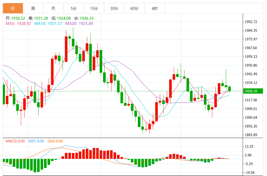 基本消息面 周四(9月21日),现货黄金窄幅震荡,目前交投于1929.85美元/盎司附近,隔夜美联储如期维持利率不变,不过整体措辞偏向鹰派,令金价再度上冲100日均线受阻后回落,虽然仍有一些逢低买盘支撑金价,但美元持续走高刷新逾半年高点,美债收益率也持续走高,令金价依然承压。 相关新