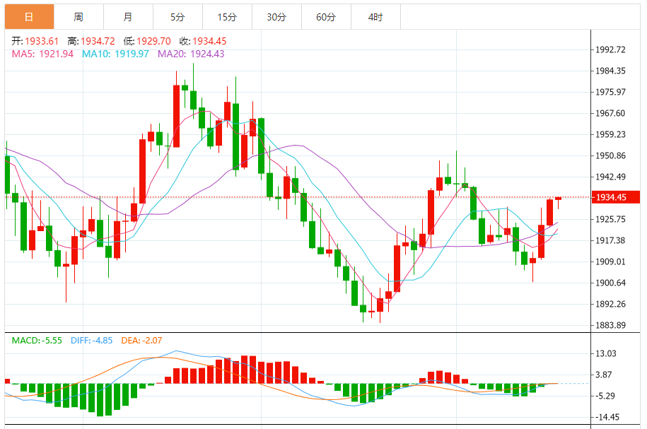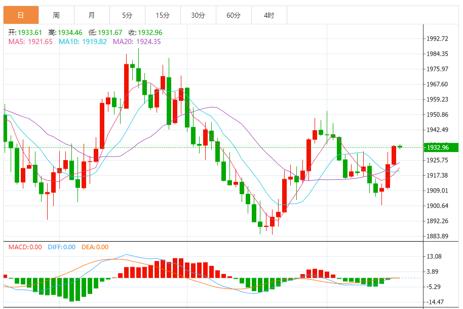 基本消息面 周二(9月19日),现货黄金窄幅震荡,目前交投于1932.11美元/盎司,虽然投资者普遍等待本周的利率决议,但对美联储暂停加息的预期和亚洲实物需求强劲的利好帮助金价初步攻克55日均线,并站稳在布林线中轨上方,短线看涨信号有所增强,有望进一步试探100日均线1945.35附近阻力。