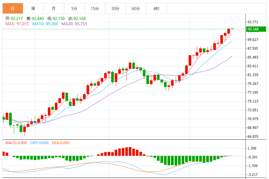 基本消息面 周二(9月19日),美原油小幅震荡,目前交投于92.1附近;原油价格继续震荡走高,美原油一度刷新逾十个月高点至92.41美元/桶,收报92.21美元/桶,涨幅约1.18%。 相关新闻消息 周三,美联储将做出利率决定,市场预计政策制定者将维持利率不变原油价格将受到沙特阿拉