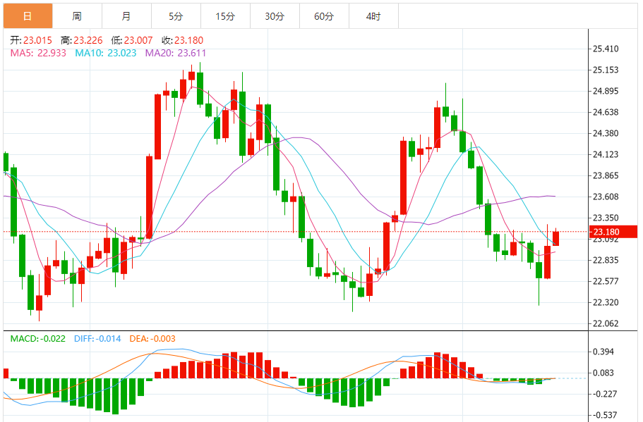 基本消息面 周一(9月18日),现货白银维持日内反弹走势,目前银价位于23.25美元/盎司附近,日内强势上升近1%。银价已经确认突破重要阻力位23.00美元/盎司附近,这为银价进一步大涨打开空间。 相关新闻消息 银价上一交易日明显突破23.00美元/盎司,且收于该位上方,从而止住
