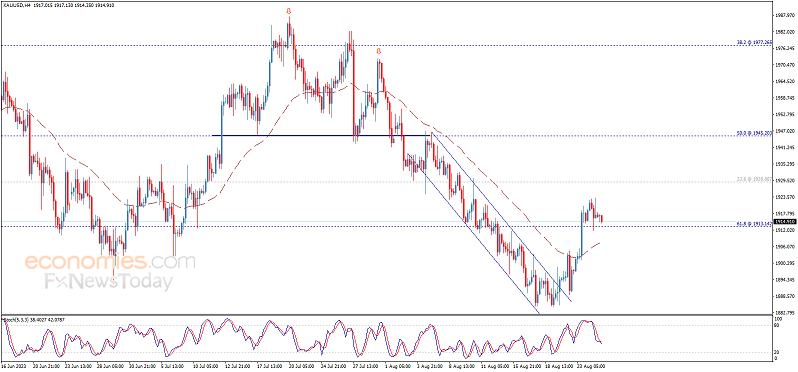 周五(8月25日),国际金价小幅走低,因美元指数升至6月7日以来新高104.276,但金价几乎铁定时隔四周后重新收涨。投资者等待美联储主席鲍威尔即将发表的讲话,这可能为利率前景提供线索。金价有望回踩1909美元后重新上涨。 黄金市场基本面分析 CityIdx高级分析师attio表示:“金价此前虚假跌破1900