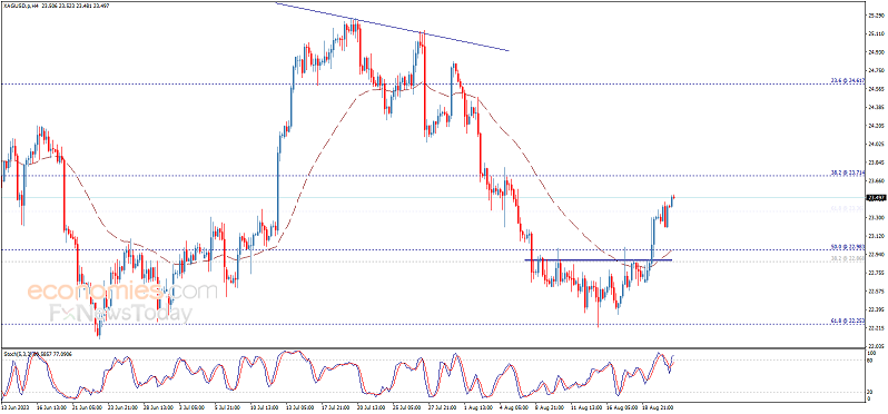 基本消息面 周三(8月23日)欧市早盘,现货白银延续日内强劲走势,银价目前位于23.80美元/盎司附近,日内大涨近1.6%。 根据cooi.co,随着银价突破目标首个目标23.70美元/盎司,后市有望进一步走强。 相关新闻消息 银价显现更多看涨倾向,并逐渐升向我们等待的目标价位23.70美元/盎司。此