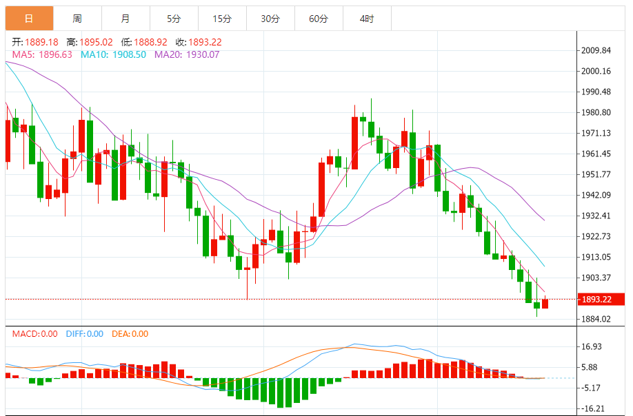 亚汇网实时消息,金价周五小幅上涨,从五个月低点反弹,因美元出现一些获利了结,不过对美国加息的担忧令金属市场承压。 美股料连续第四周下跌,因强劲的就业市场数据和美联储发出的鹰派信号令市场押注美联储将加息,从而保持黄金仓位。 现货金价本周也跌破每盎司1900美元的关键水准,这可能预示着金价近