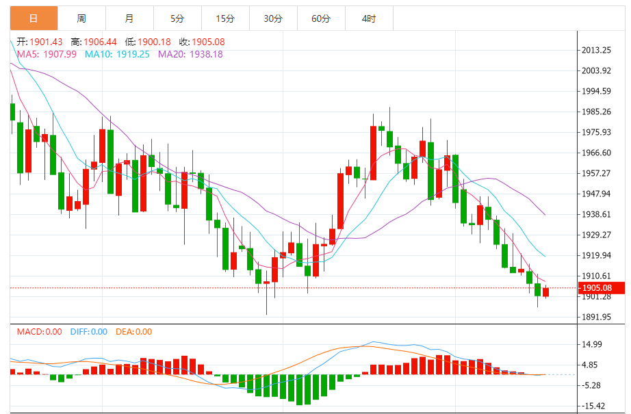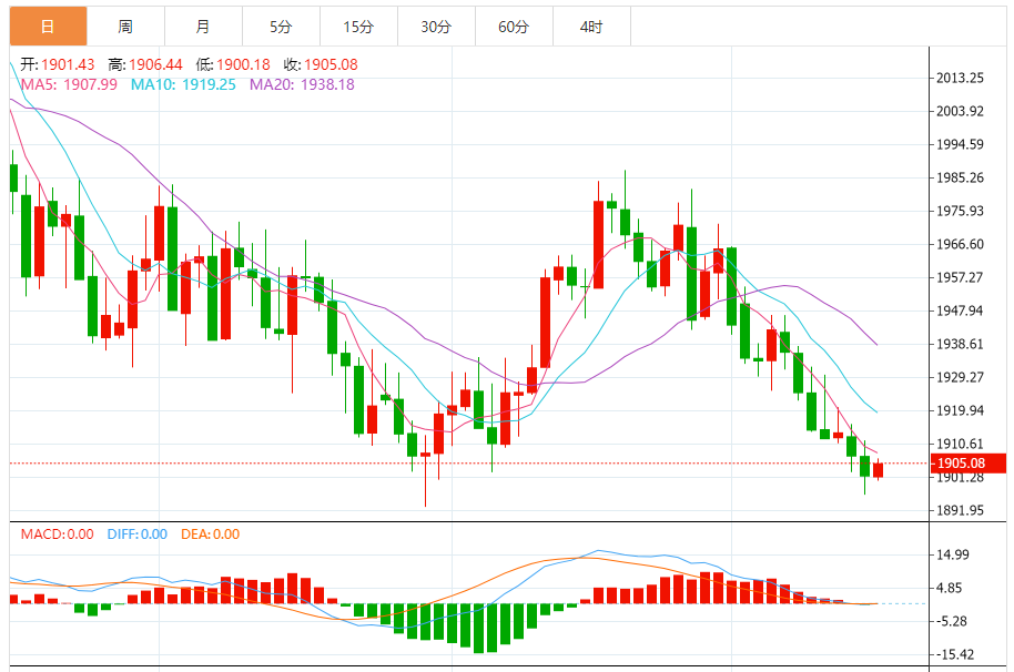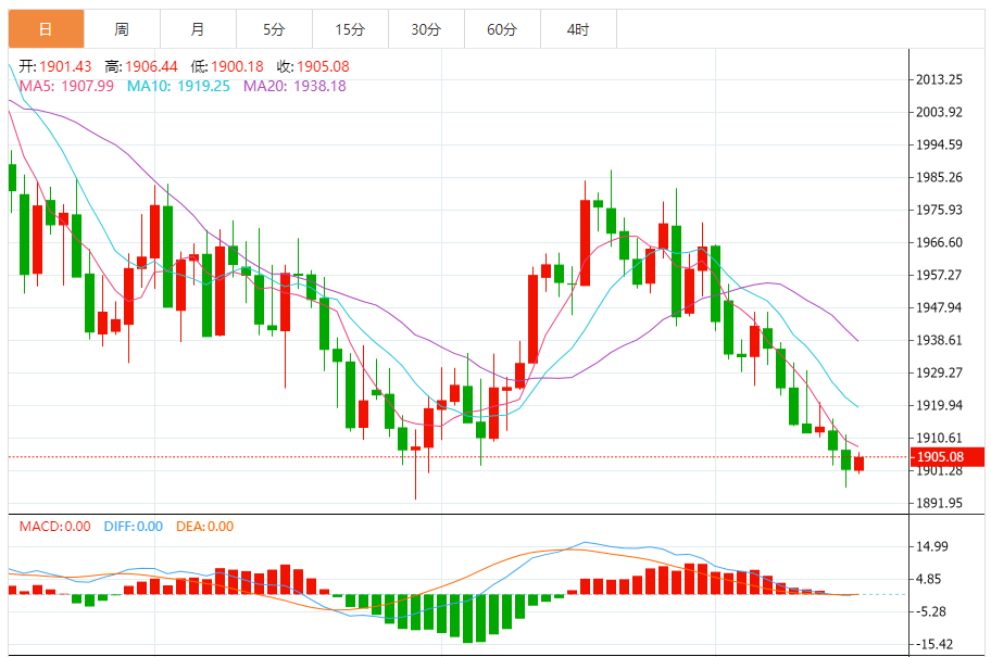 周三(8月16日)欧市早盘,现货黄金交投在1906美元/盎司附近。 黄金市场基本面分析 金价周二盘中一度跌至1896美元/盎司附近,为6月末以来最低水平。目前黄金价格仍然承压。 随着金价一度跌破1900美元/盎司,看跌黄金的观点获得追随者。 现货黄金周二收报1901.74美元/盎司,下跌5.28美元或0.28%