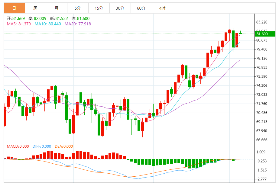 基本消息面 周五(8月4日),国际油价持坚,并有望连续第六周上涨,因世界第二大原油生产国沙特阿拉伯延长减产,并且世界第三大原油生产国俄罗斯承诺进一步削减出口。技术上看,油价短线可能回调,YX原油下方支撑在81.24美元。 相关新闻消息 周四(8月3日),沙特阿拉伯将自愿减产100万桶/日