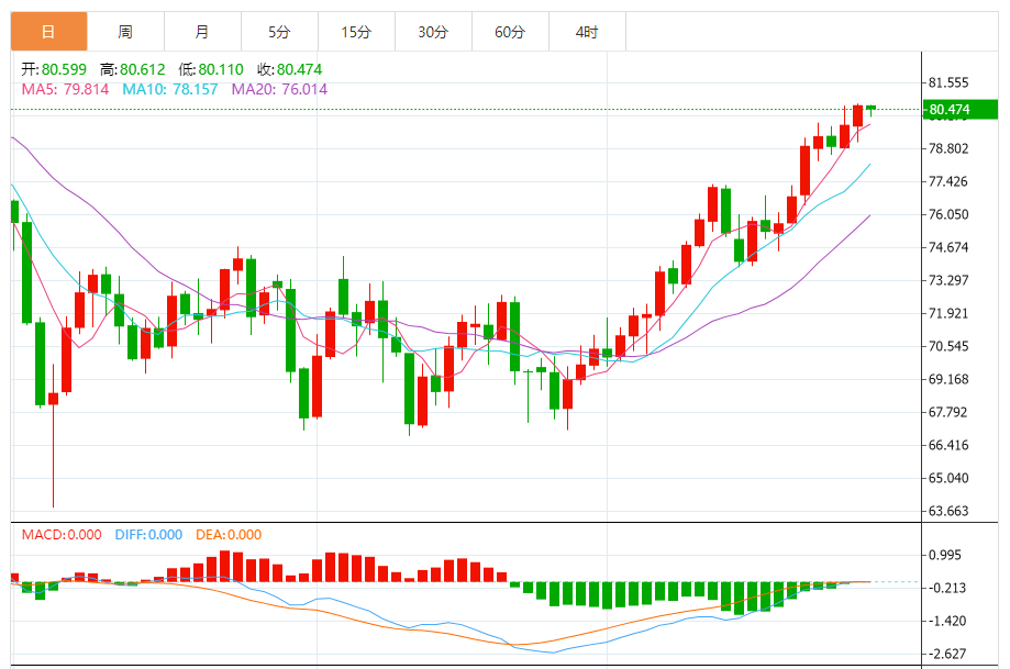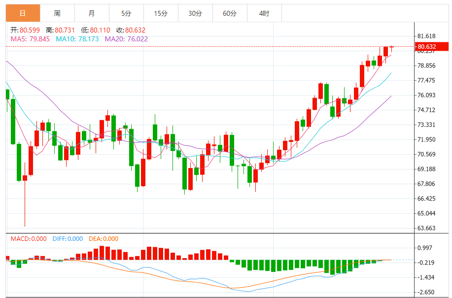 基本消息面 周一(7月31日),美原油窄幅震荡,目前交投于80.40美元/桶附近,仍守住了上周的大部分涨幅。因预期沙特阿拉伯将把自愿减产延长至9月,收紧全球供应,油价料将创下一年多来最大月线涨幅。技术面和基本面仍偏向多头,油价有望上探4月份触及的2022年11月中旬以来的高点83.51附近阻力。 分析师表