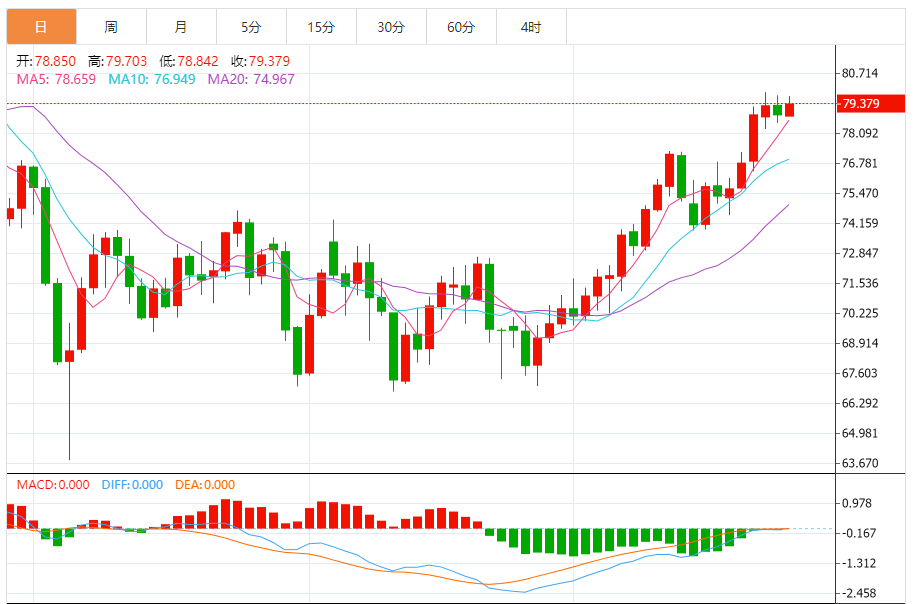 基本消息面 周四(7月27日),美原油震荡上涨,目前交投于79.26美元/桶附近,虽然之前美联储加息25个基点,可能减缓经济增长并减少石油需求,而且美国原油库存降幅低于预期,令油价继续承压于80整数关口,但对供给收紧的预期和对中国需求走强的预期,仍给多头提供信心,油市短线仍偏向多头,有望向上突破80关口