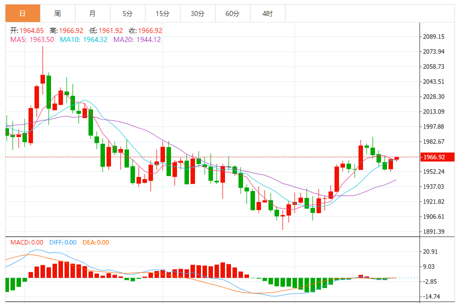 基本消息面 周二(7月25日),随着市场预期美联储可能在市场普遍预期的本周加息后结束货币紧缩周期,美元走弱,金价上涨。 美市尾盘,现货黄金收报1964.68美元/盎司,上升10.16美元或0.52%,日内最高触及1965.70美元/盎司,最低触及1951.34美元/盎司。 COX8月黄金期货收涨0.07%,报1963.70美元/盎