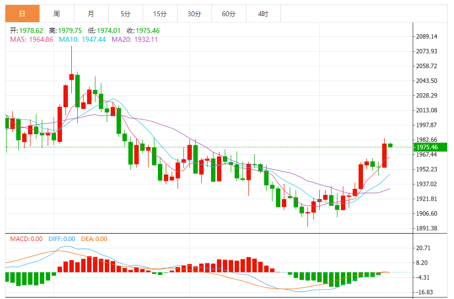 基本消息面 周三(7月19日),现货黄金短线突然一波急涨,金价正逼近1980美元/盎司关口。黄金价格目前在数周高点附近整固,略低于1980美元/盎司。金价似乎准备延长最近在过去三周左右的稳定上升走势。疲软的美元走势继续为黄金提供支撑。对美联储改变鹰派立场的押注有利于看涨黄金的交易员。 相关新