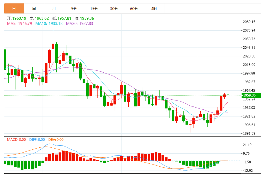 基本消息面 周五(7月14日),美元指数短线突然快速上升,目前位于99.95附近,较日内低点反弹近40点。现货黄金短线突然一波急跌,金价正逼近1955美元/盎司。随着风险偏好持续,黄金变得没有吸引力。由于投资者关注高收益资产,黄金未能延续涨势。 相关新闻消息 现货黄金周四收报1960.25美元/盎