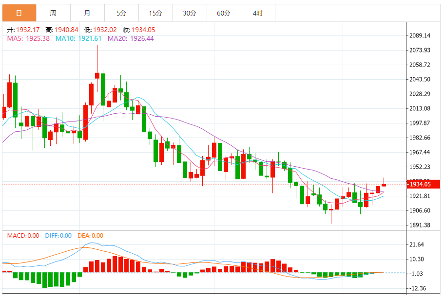 基本消息面 周三(7月12日),国际金价一度升至6月20日以来新高1940.84美元/盎司,但随后回吐日内多数涨势,投资者在美国通胀数据即将公布前避免过度交易。该数据可能为美联储政策路径提供更多线索。 截至发稿,现货黄金上浮0.13%至1934.38美元/盎司;COX期金主力合约上浮0.13%至1939.7美元/盎司;美元指