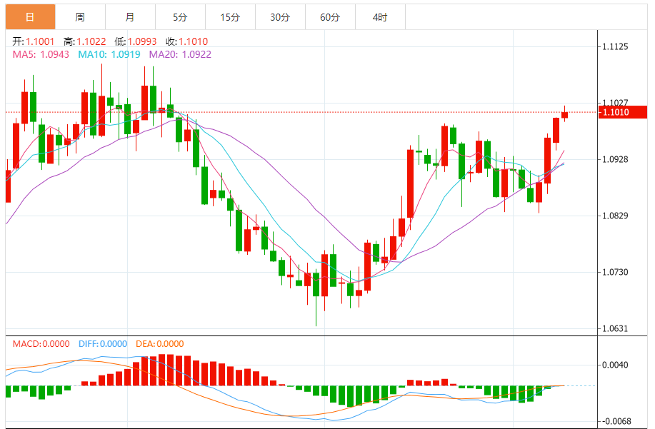 周二,欧元/美元徘徊于1.1015关口下方,现交投于1.1015附近,涨幅0.12%。 市场基本面分析 德国央行行长、欧洲央行管理委员会委员内格尔(Joachiagl)表示,欧洲央行可以在不对经济造成严重损害的情况下控制通胀。正处于历史性一轮加息中的政策制定者必须“相对迅速”采取行动,以控制价格预期。
